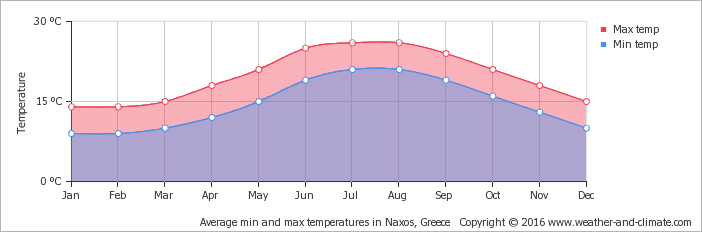 Being a part of the Cyclades island group, Serifos shares their typical weather. During summer temperatures are around 30 to 35 degrees Celsius (three degrees lower than continental Greece).