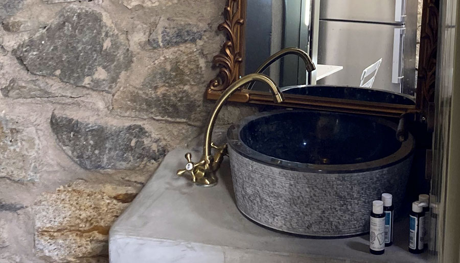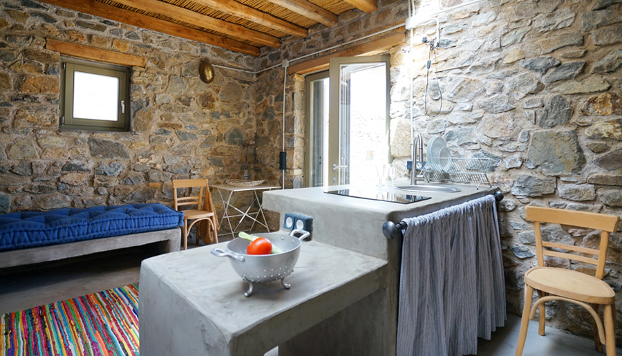 The house is built out of stone in the unpretentious spirit of the island and has the stamp of its owner’s architectural view.