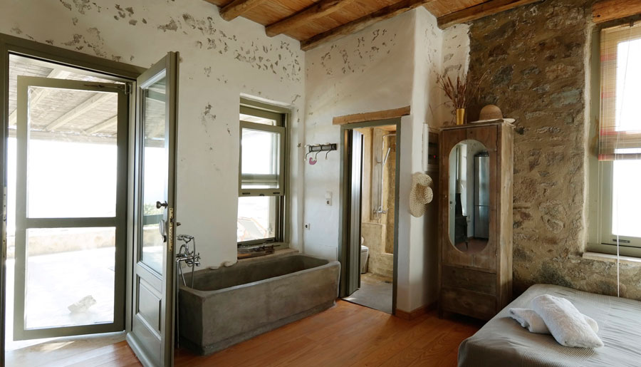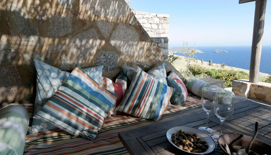 The villa is built out of stone in the unpretentious spirit of the island and has the stamp of its owner’s architectural view.